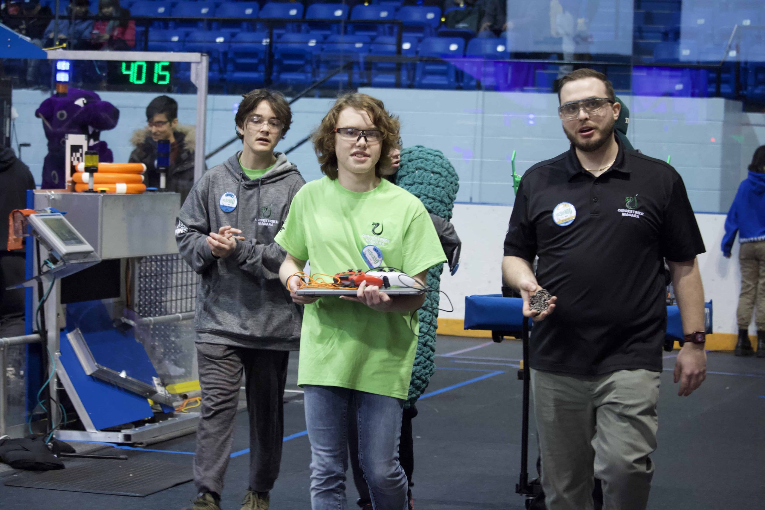 Our team is open to any student in Grade 8-12 in Niagara, regardless of the school they attend. No special skills or experience are required! Registration starts in the summer. During the pre-season from September to December, team members work with mentors at weekly meetings to learn mechanical, programming and business skills. In January, the season starts with a kickoff where the game is revealed. For next six weeks, the team will meet several times a week to build and program their robot and prepare for competition.